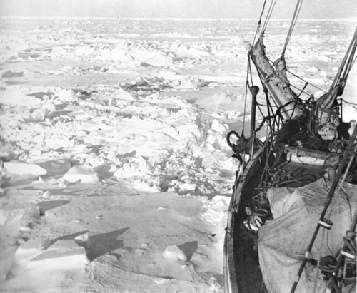 But the Weddell Sea was notoriously inhospitable, and already we knew that its sternest face was turned towards us. All the conditions in the Weddell Sea are unfavorable from the navigator’s point of view. The winds are comparatively light, and consequently new ice can form even in the summertime. The absence of strong winds has the additional effect of allowing the ice to accumulate in masses, undisturbed. Then great quantities of ice sweep along the coast from the east under the influence of the prevailing current, and fill up the bight of the Weddell Sea as they move north in a great semicircle. Some of this ice doubtless describes almost a complete circle, and is held up eventually, in bad seasons, against the South Sandwich Islands. The strong currents, pressing the ice masses against the coasts, create heavier pressure than is found in any other part of the Antarctic. The pressure must be at least as severe as the pressure experienced in the congested North Polar basin, and I am inclined to think that a comparison would be to the advantage of the Arctic. All these considerations naturally had a bearing upon our immediate problem, the penetration of the pack and the finding of a safe harbor on the continental coast.