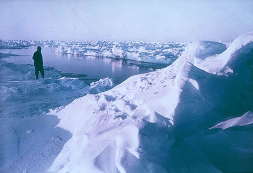 Floe. (Light floes, and heavy floes. Heavy floes covered with deep snow in the Antarctic.)