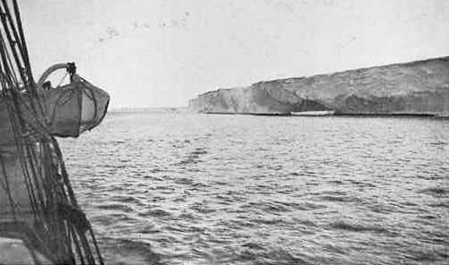 [The ice cliffs of Coats Land (“the barrier”), Antarctica, eastern edge of the Weddell Sea. Named by William S. Bruce, Scottish National Antarctic Expedition, 1902.]