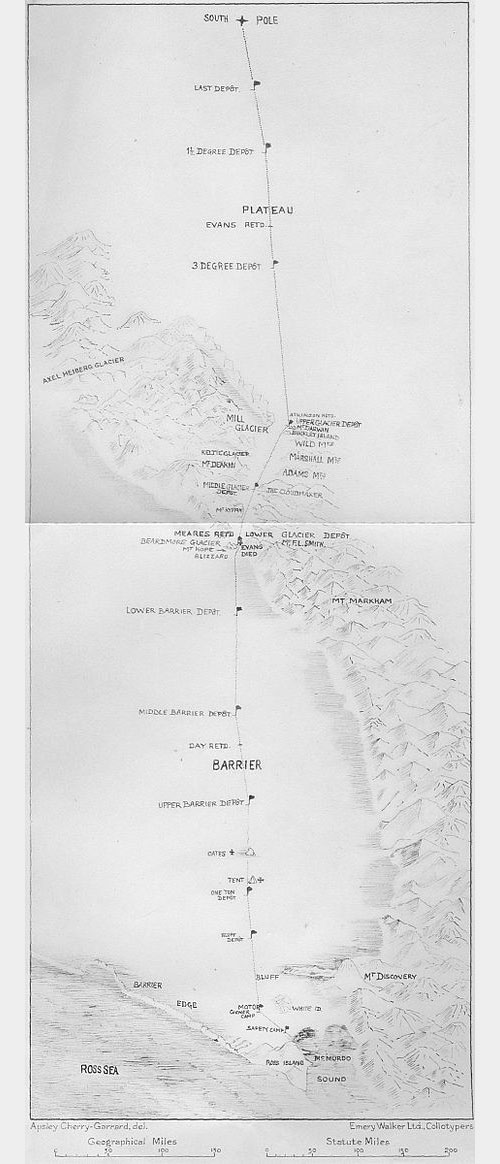 Map by Apsley Cherry-Garrard, The Worst Journey in the World: Antarctic 1910 – 1913, Vol. II, p. 542., pub. 1922.