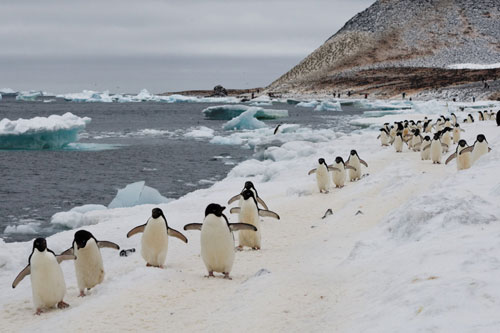 The quaint little penguins found the ship a cause of much apparent excitement and provided a lot of amusement aboard. One of the standing jokes was that all the adelies on the floe seemed to know Clark, and when he was at the wheel rushed along as fast as their legs could carry them, yelling out “Clark! Clark!” and apparently very indignant and perturbed that he never waited for them or even answered them.