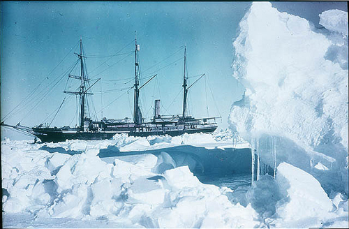 The Fram anchored in the Bay of Whales, during Amundsen’s successful bid for the South Pole.
